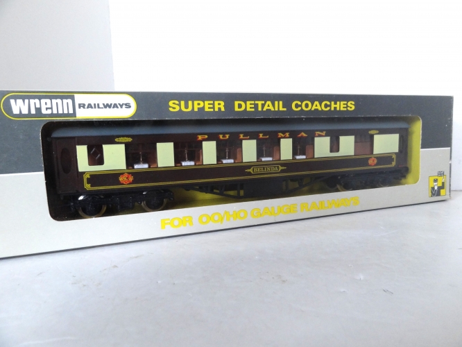 This is an excellent example of the very rare Wrenn W.6002B "Bellinda" 1st Class Kitchen Pullman Car in Brown/Cream issued by Wrenn, Basildon in the last 2 years of Period 4. (1992 closure). It has the full B/B rosettes and White Tables. Only 150 of these were produced. For those collecters/runners that collect the Wrenn Pullman variations, this is Brown/Cream sprayed over a Maroon base plastic body.