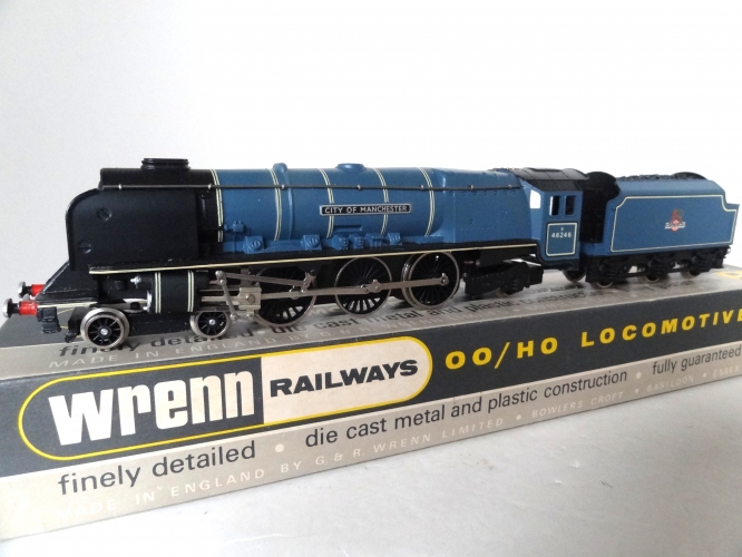 This is a superb example of the rare Wrenn W2229/A 4-6-2 8P "City of Manchester", City Class Locomotive in BR Blue - Mk 1 version. Running number is 46246. Introduced by Basildon in early Period 4, this Locomotive was only produced between 1980 to 1984. Although just over 350 were produced, and hence this Loco has become very difficult to find today for the collection and running. Has seen minimal layout use in my opinion, all transfers/lining in place.