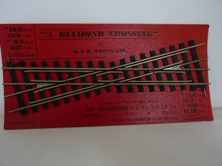 This is a superb example of the Wrenn Type 0010 15 Degree Right Hand Diamond Crossing in 2 Rail - Nickel Silver. Introduced by Wrenn, Basildon in the early 1960,s. The Diamond Crossing comes mounted on its original red card.