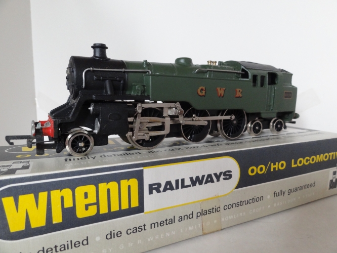 This is a superb example of the Wrenn W2220 GWR 2-6-4 Tank Locomotive in Great Western Green Livery, running number 8230. Introduced by Wrenn, Basildon in 1973 (Period 3), this example is from that period. As with all Period 3 Wrenn Locomotives it has "metal rimmed" bogie wheels throughout. Many examples of this Locomotive tend to be "play worn" this is not, and has seen minimal layout use in my opinion..