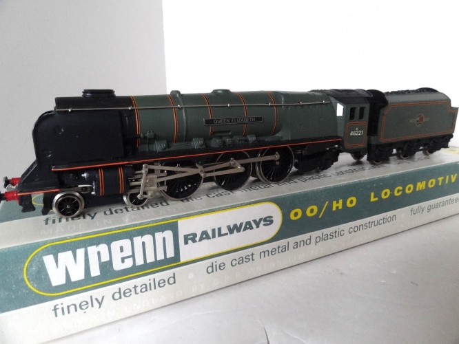 This is a superb example of the rare Wrenn W.2299 "Queen Elizabeth " Locomotive in BR Green, running number 46221. Introduced by Wrenn, Basildon in 1990, this model finished in production in 1992 with only 145 issued by the Wrenn, Basildon factory. The tender has the late BR Totem, and the Locomotive has seen minimal layout use if any. All lining/transfers in place.