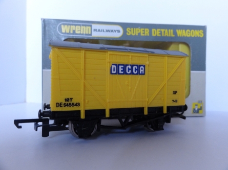 This is the Wrenn W5054 "DECCA" XP Ventilated Van in Yellow, running number DE545543. Introduced by Wrenn, Basildon in Period 4, this was only issued in a P4 box. This, "FYFFES" and "DUNLOP" were the only all yellow Vent Van that Wrenn, Basildon issued. Some unscrupulous people over the years have removed the "DECCA" transfer to create a "rare" alternative, but this was never an issued production item in my opinion. As with all P4 wagons it has "metal rimmed" wheels.
